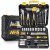 Crafted from chromium vanadium alloy, this tool kit is built to last, handling high pressure and wear without losing its strength or precision. Every tool has been engineered for the professional touch, helping you work more effectively and efficiently. The combination of pliers, wrenches, and ratchet ensures you’re ready for any fastener, while the adaptable socket drill extensions give you the freedom to work on various surfaces and materials. The bright yellow and black design not only looks sleek but helps you quickly identify tools when you’re deep into a project.